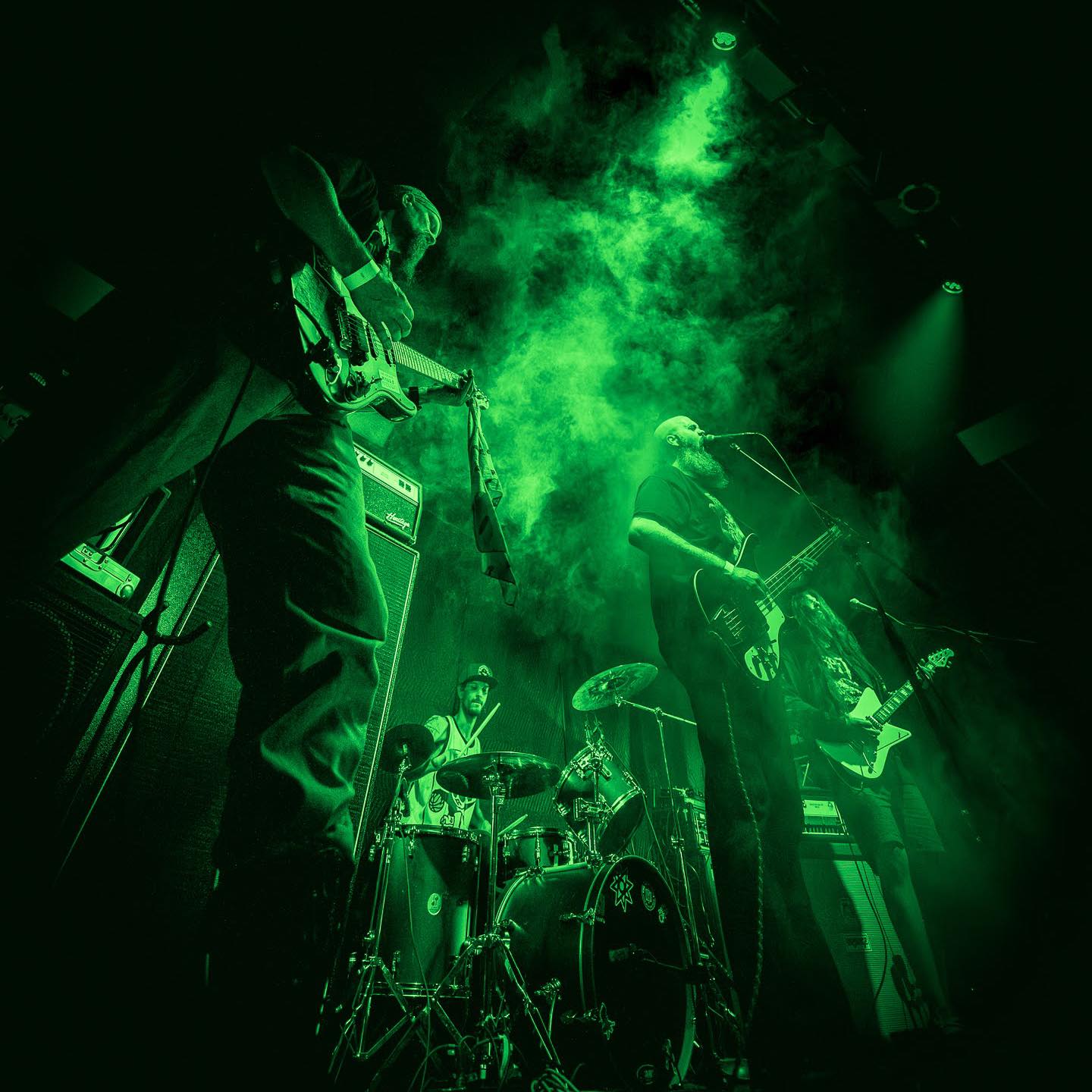 Omaha’s Weaving Shadows formed in 2022 out of the ashes of Kyle Androy and Erik Fichtner’s previous project Dopecorpse, and with the addition of drummer Mason Weber and guitarist Adrian Salcido – described locally as an Omaha guitar legend – the band has been building toward something heavier. “Kodokushi” dropped March 5th, produced by Grammy-nominated engineer Tim Zick, and the title refers to the Japanese phenomenon of dying alone and going undiscovered. It’s that kind of record. The band records everything live to preserve the raw energy of high-wattage amplifiers, and that choice matters here – this is not a track that could survive being sterilized in post.