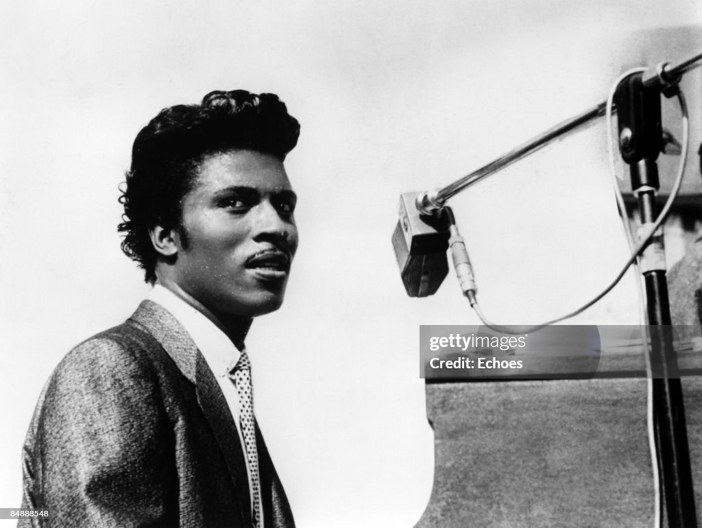 CIRCA 1957: Musician Little Richard performs onstage with his band as his saxophone player Grady Gaines stands on the piano in circa 1957 in scene from the movie ‘Mister Rock And Roll.’ (Photo by Michael Ochs Archives/Getty Images)